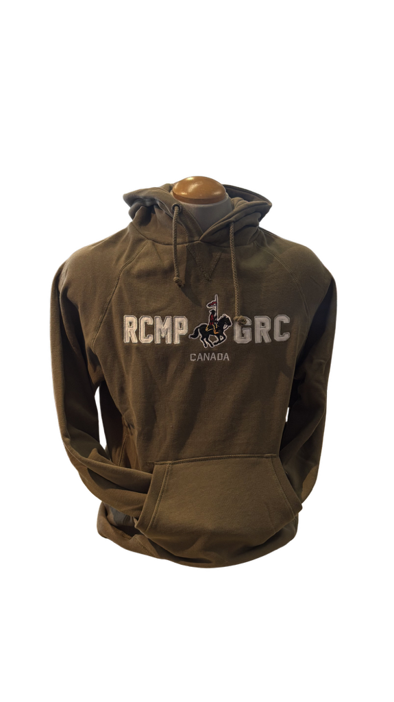 Sweatshirt à capuche RCMP-GRC! Parfait pour les nuits froides d’hiver. Montrant les lettres traditionelles RCMP-GRC avec un gendarme à cheval. Le Sweatshirt à capuche est disponible en Gris, Rouge et en Bleu Marin.